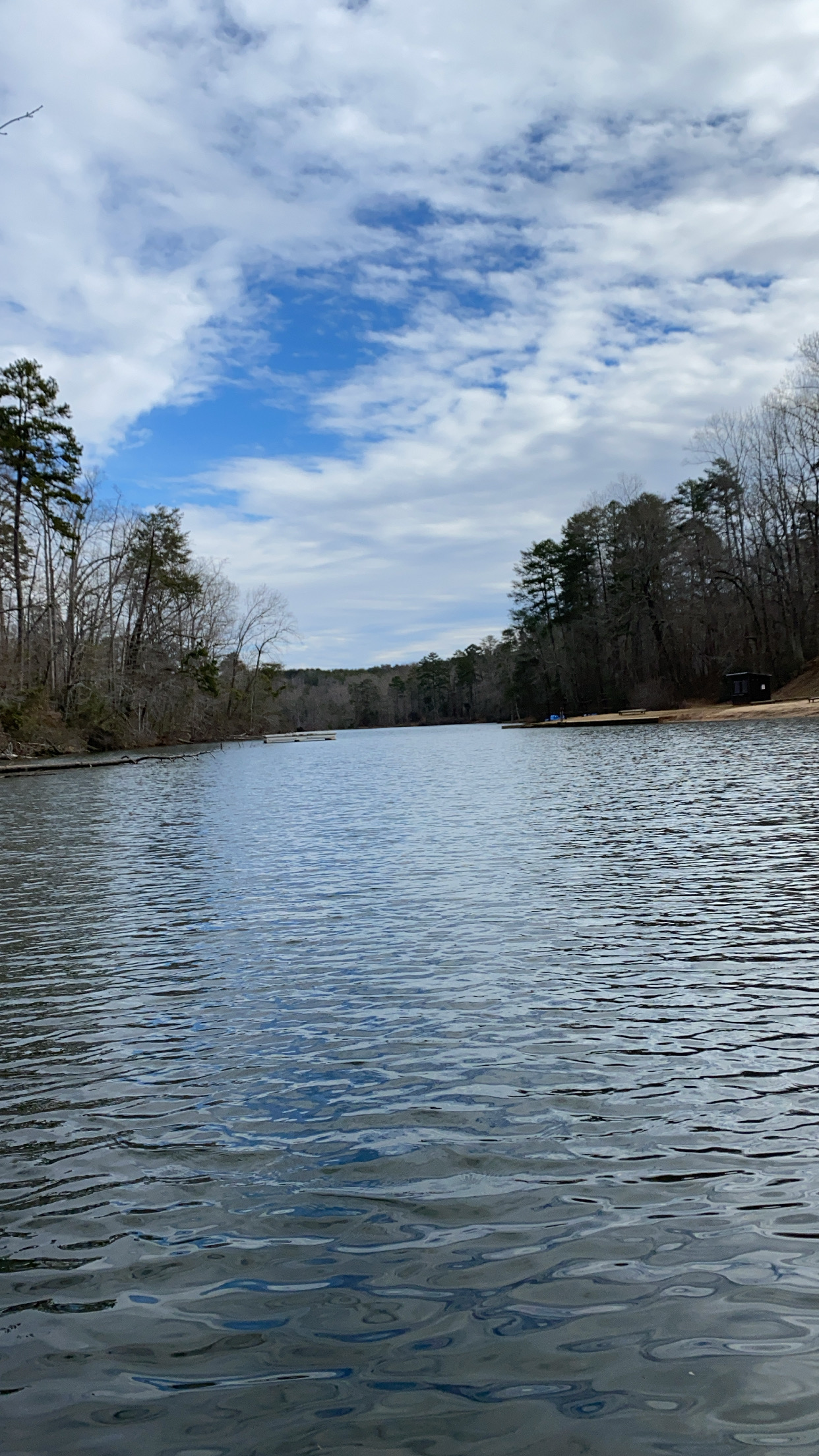 We made our way down the stone stairs, weaved in and out of picnic tables and crossed over a wooden bridge to find the start of the trail that would take us around the lake and up into the mountain. Not too far down the trail, and down an embankment, was a waterfall. We tried to take selfies with the water cascading down the rocky mountainside as the background; that was an epic fail. Of course, my selfie stick was in the car so the only thing you could see in the pic was two old people with toothy grins and some indiscernible element in the background. So, we kept going. We wound around the lake passing a few friendly strangers and happy dogs. Then we walked along a Creekside and enjoyed the sound of water flowing down stream. There were a few hearty plants trying to push their way through the tough winter ground and lots of reasons to hold hands while we walked. We continued up the mountain trail a bit and then turned around and headed back to the lodge where the lake was shallow and met the sand. There were toddlers and small children running along the sandy beach squealing while dogs barked and ran along the dock. I had to pinch myself to make sure it was all real.