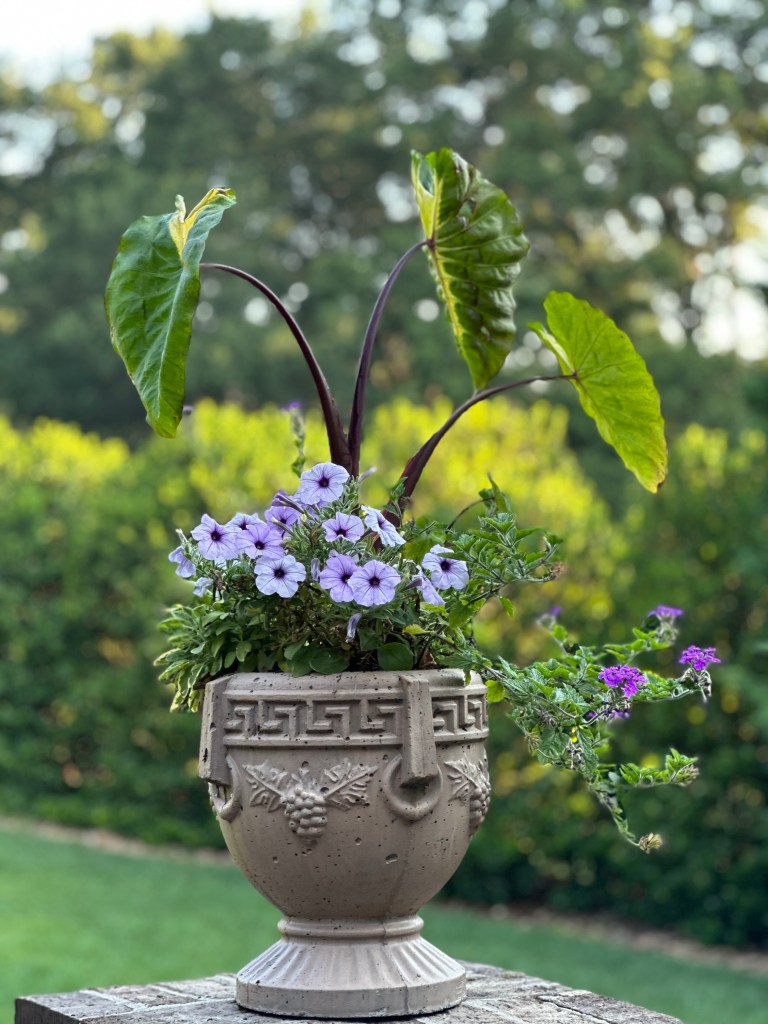 So far, I have basil, cilantro, oregano and lavender, I don’t even recognize myself these days. I’m drawn to plants and yard projects, and you should see my pots on the back deck. As a matter of fact, I’ll share a pic of one with you, I’m blown away with its beauty, especially after it rains. I have to confess my cilantro is struggling, hopefully I can save it. This is so different from, well, from my whole past where I wasn’t able to keep a plant alive to save my life. RIP to all the peace lilies I ever tried to grow. These days something about the having plants is nourishing a deep place within me, I don’t even think I can explain it, I just know I’m happier watching them grow.