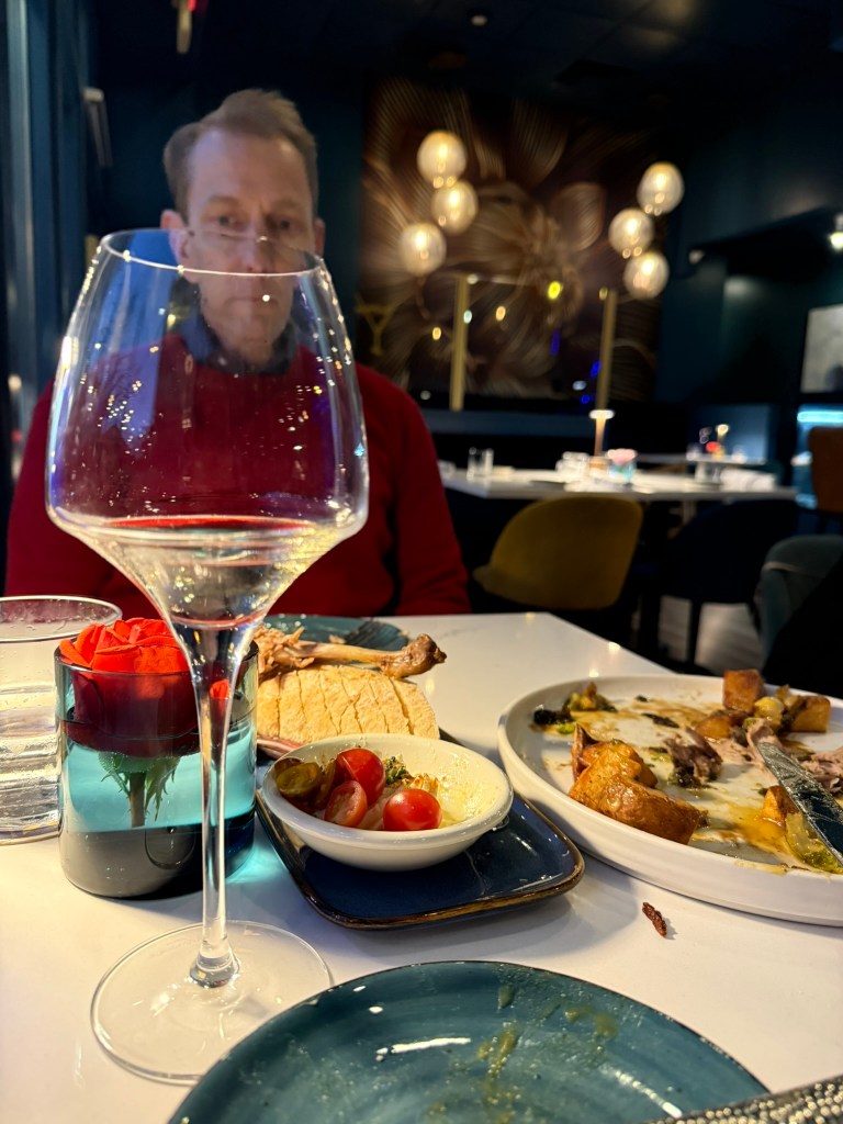 That evening, we dressed up and went out to eat at a nice restaurant. The menu had options I couldn’t even pronounce, and after a bit of debate with myself, I settled on the duck. Jeff loves duck. I’ve only had it once, many years ago, and I remember trying to pretend I was eating it so I wouldn’t be rude. This time, I decided to really give it a fair shot, and I am disappointed to tell you that I loved it. Disappointed because ducks are so cute, and I can’t believe I ate one and liked it.