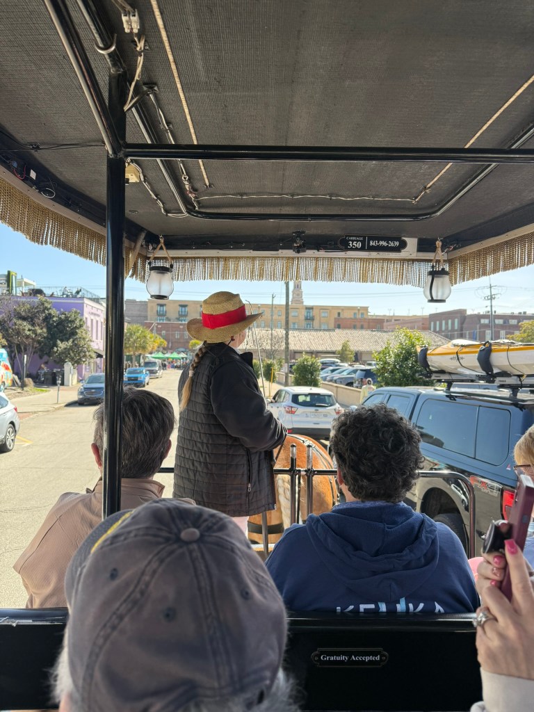 A highlight for us, especially for Jeff, was a wagon ride through some of the city’s most popular streets. The driver was so knowledgeable and filled us in on many wonderful details. For example, did you know, according to our tour guide, that Charleston is one of the most historically preserved cities, second only to Paris? The signage all over town, giving the history of one building after another, is proof. If you want to change something as simple as the color of your home in the historic district, you have to get permission from the Preservation Society.