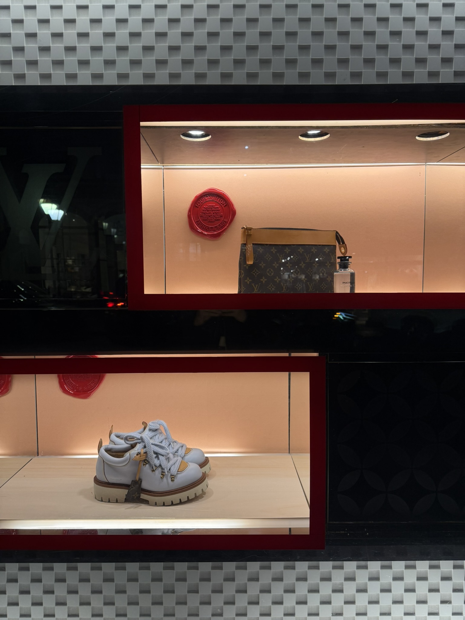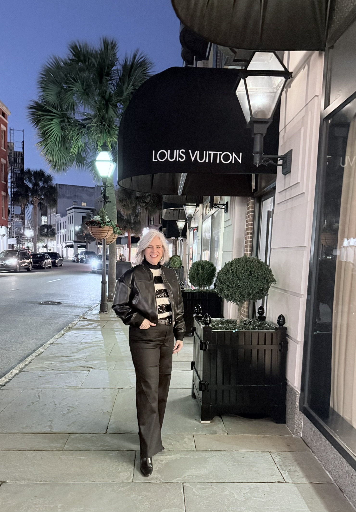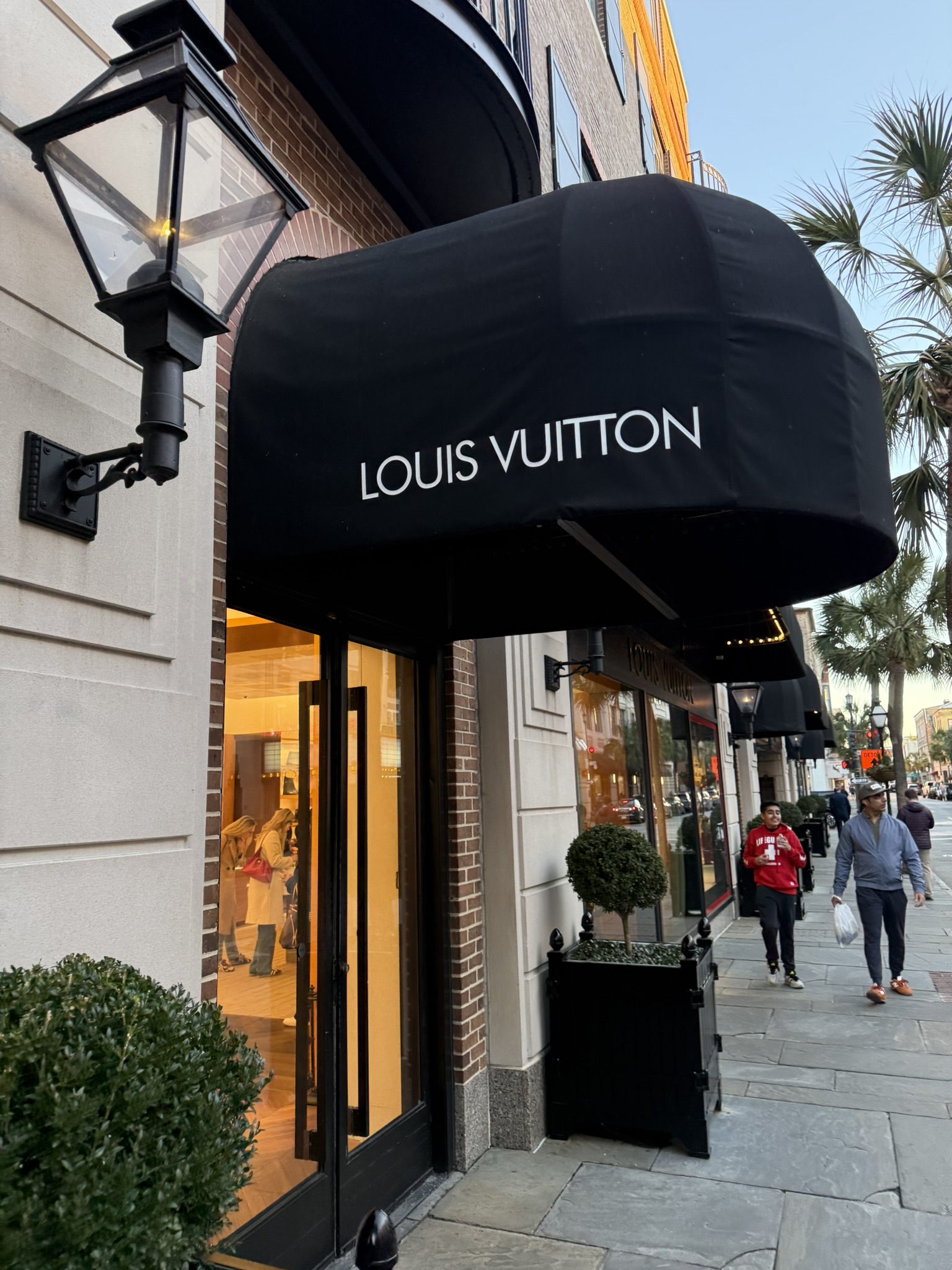 The walk back to our room took us past shops selling purses that cost as much as a car. Beautiful bags and clothing, but I’ll only ever shop from the window. It kind of felt like we’d stumbled onto Rodeo Drive. It was a fun photo op, though.