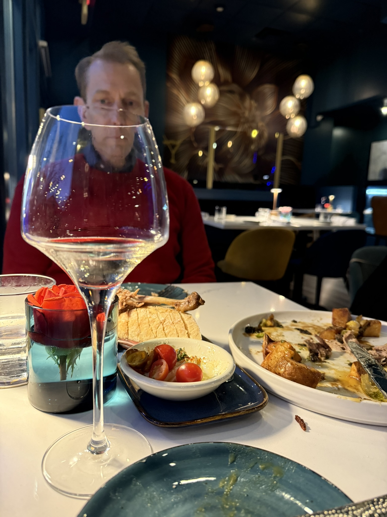 That evening, we dressed up and went out to eat at a nice restaurant. The menu had options I couldn’t even pronounce, and after a bit of debate with myself, I settled on the duck. Jeff loves duck. I’ve only had it once, many years ago, and I remember trying to pretend I was eating it so I wouldn’t be rude. This time, I decided to really give it a fair shot, and I am disappointed to tell you that I loved it. Disappointed because ducks are so cute, and I can’t believe I ate one and liked it.